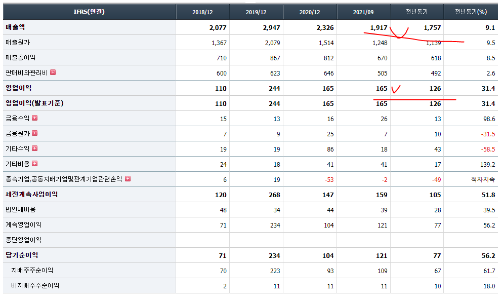- 2021년 9월 전년동기 대비 연결기준 매출액은 9.1% 증가, 영업이익은 31.4% 증가, 당기순이익은 61.7% 증가. 하이테크 CM 수주 물량 증가 및 반도체, 데이터 센터, 물류센터 수주 호조로 전년 대비 큰 폭으로 실적 개선. 코로나 19로 스마트 물류센터 수주 역시 급증. 미국의 설계 엔지니어링 전문기업과 PM/건설사업관리 기업 등을 인수하는 등의 사업다각화 노력중임.