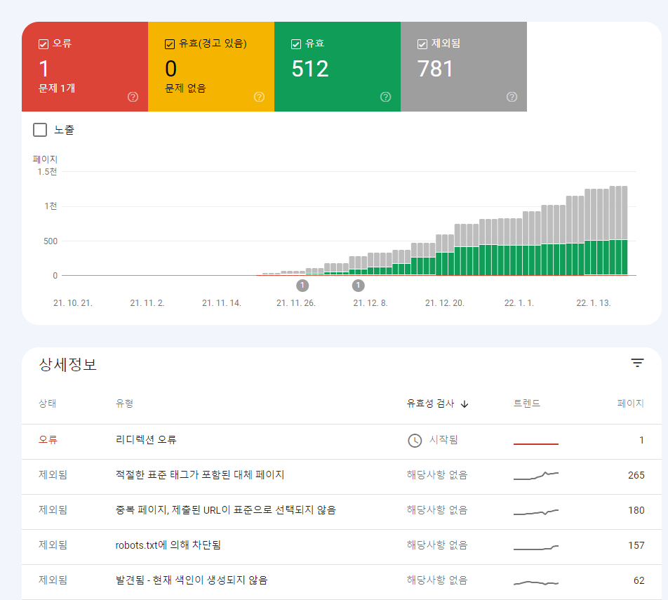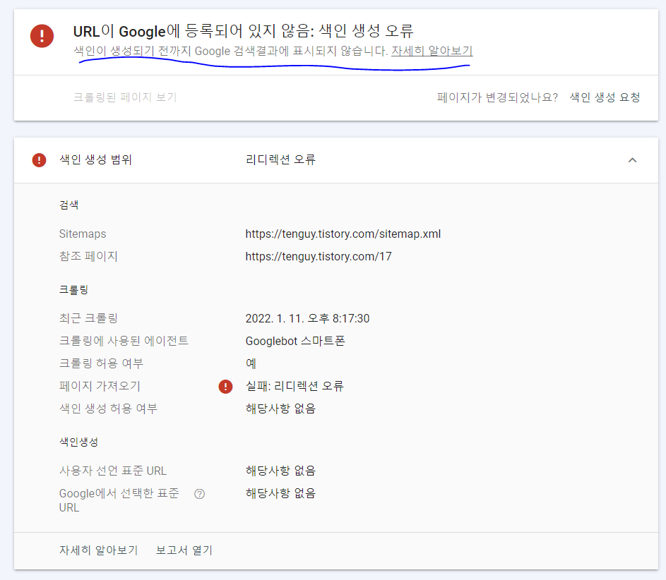 그리고 이 작업을 해야 하는 이유가 오래전에 작성한 내용이 구글에 등록이 되지 않으면 뭍히는 글로 됩니다. 색인 요청 해도 상위 검색이 되지 않을 수 있기 때문에 항상 주의 해야 합니다.