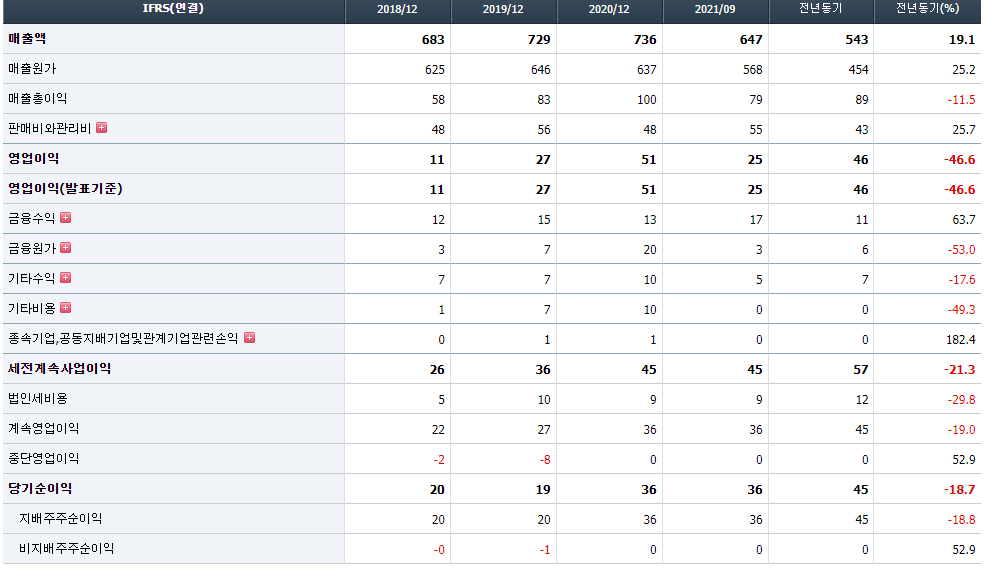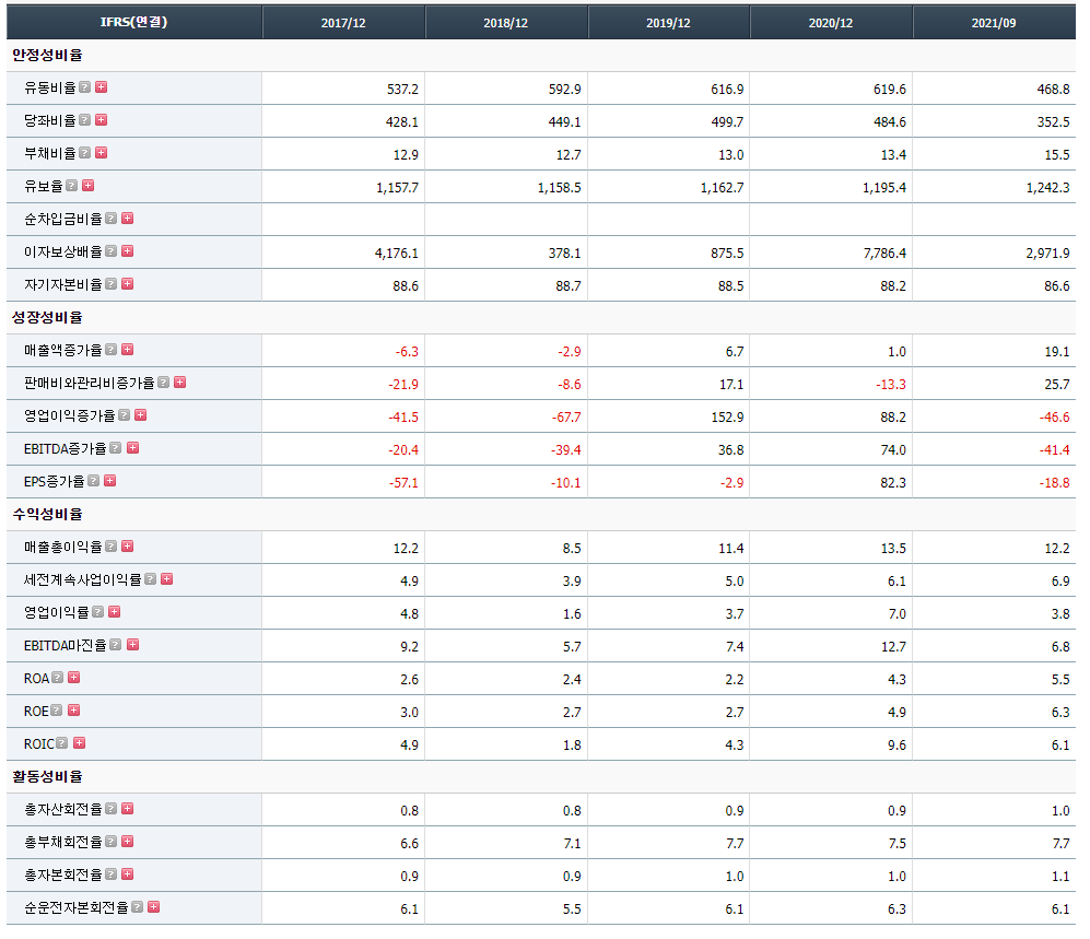 - 2021년 6월 전년동기 대비 연결기준 매출액은 24.3% 증가, 영업이익은 34.4% 감소, 당기순이익은 25.6% 감소. 어려운 환경속에서도 비교적 양호한 매출 성장세를 시현하고 있으나, DINP 및 LS-100 등 원재료 가격의 상승 영향으로 영업수익성은 하락한 모습. 불확실한 경제 상황, 환율요인 및 내수부진에 따른 경쟁심화 등 어려운 시장환경속에서도 나름대로 선방하고 있는 것으로 판단.