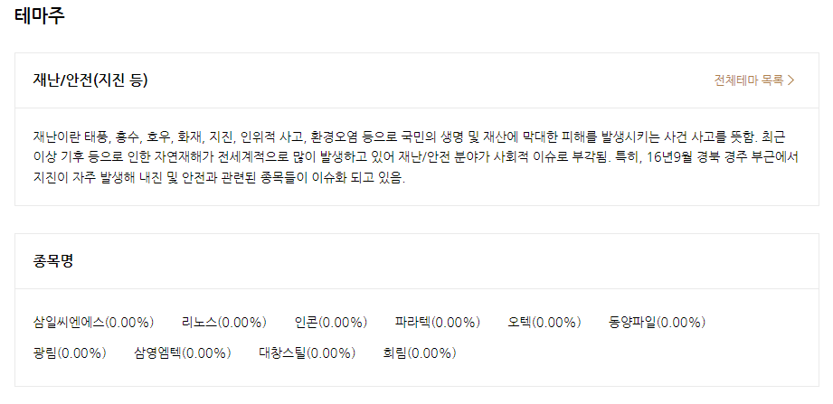 사이트 마다 정의하는 테마주가 조금씩 다릅니다.