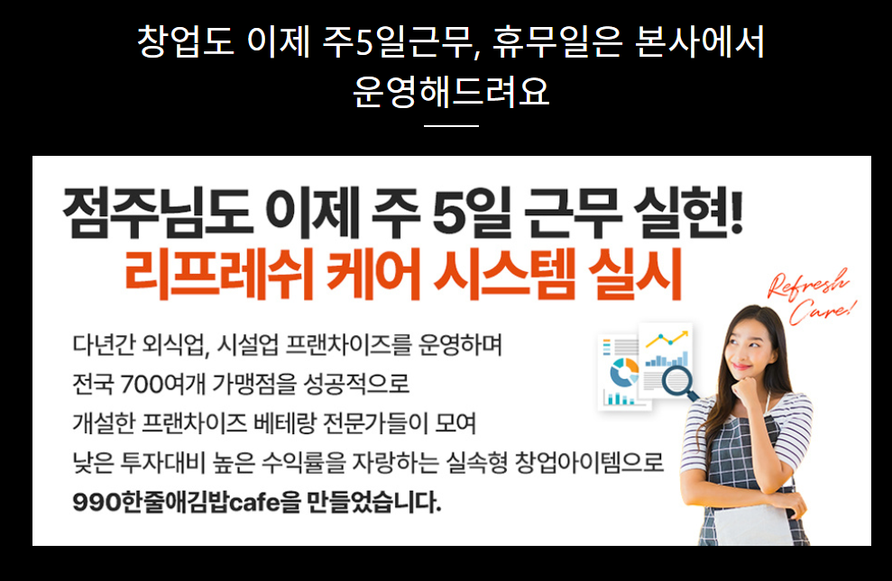 여기에 리프레쉬케어시스템 운영으로 점주님 휴무일에는 본사가 대신 운영해드립니다!