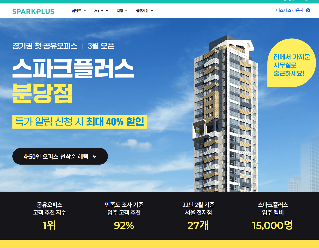 4-50인 분당공유오피스 스파크플러스 분당점 3월오픈 특가알림