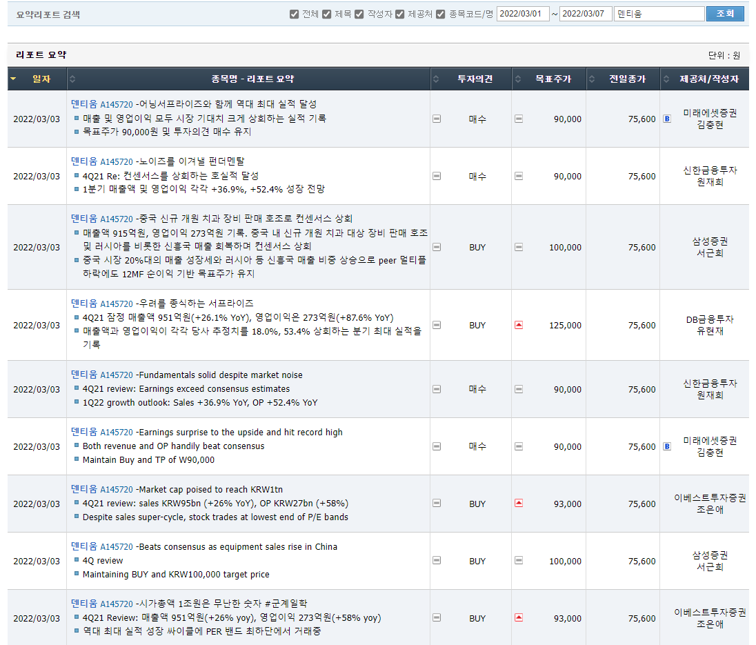 모든 애널리스트들이 비슷한 내용으로 검토 된 덴티움 리포트....