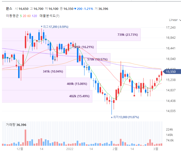 최대 실적임에도 거래량이 나오지 않고 있음.