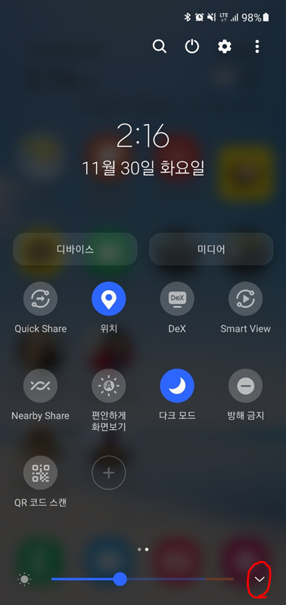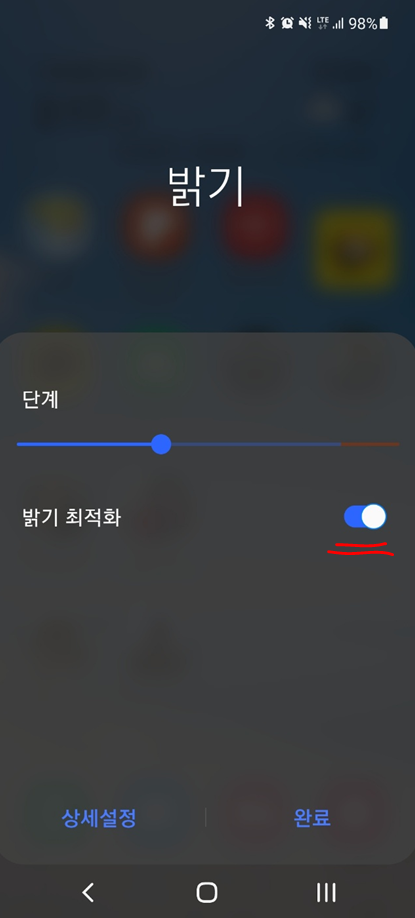 화면의 아래 화살표를 열어 보면 밝기 조절을 자동으로 할 수 있습니다.