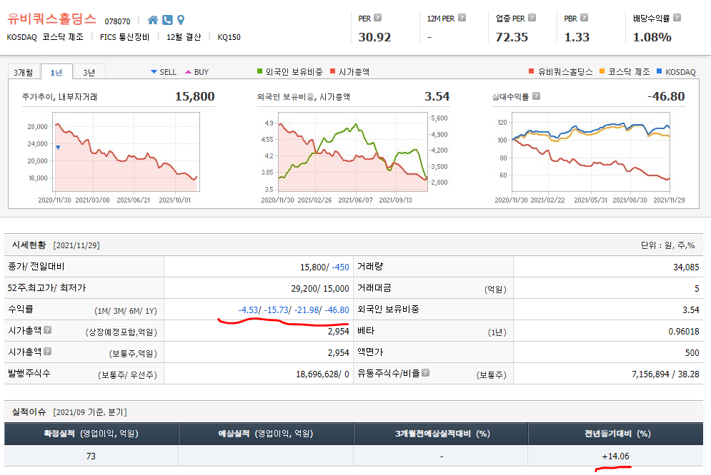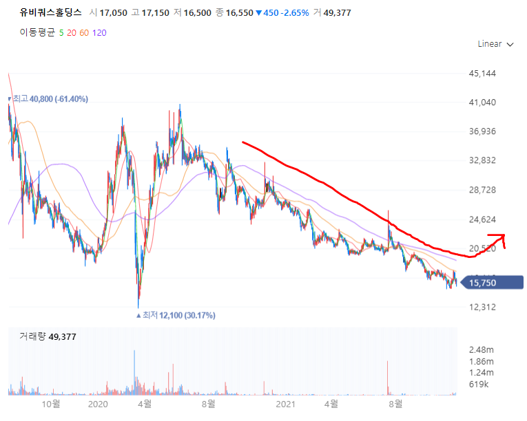차트를 보면 잔인 하게도 1년동안 미끄럼 타고 있다...1년 가까이 -60% 내려 왔다...