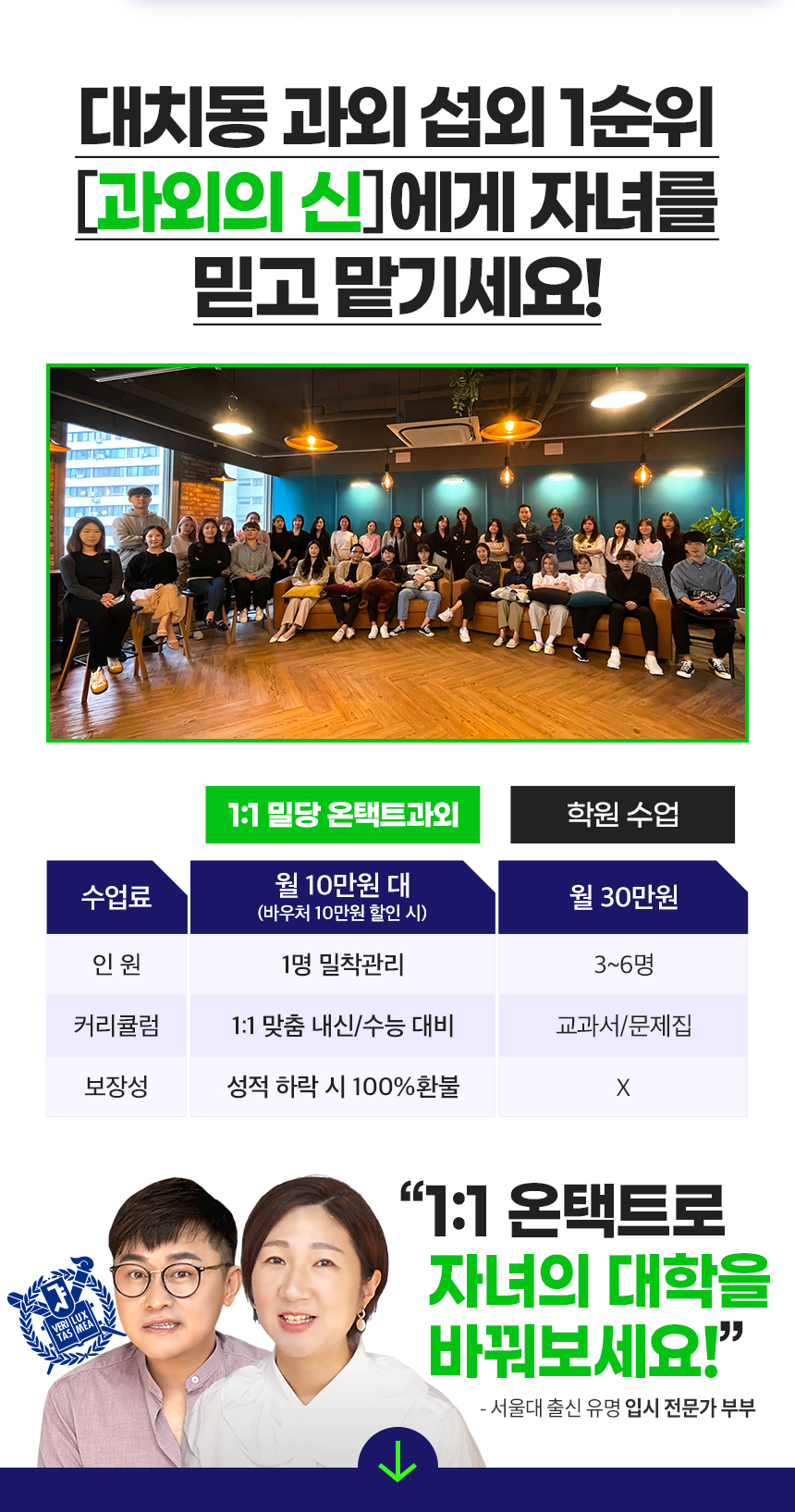 아직도 동네 학원에만 의존하세요? 동네학원 말고 대치동 수준 1:1 온택트 과외하세요 서울대 의대 수석이 직접 말해주는 8등급 학생도 서울대 보낸 "꿀 정보" 자타공인 대한민국 공부 상위 1%들