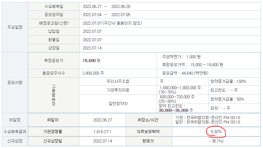 일단 경쟁률이 낮기 때문에 따상 시작은 어렵다고 생각됩니다.