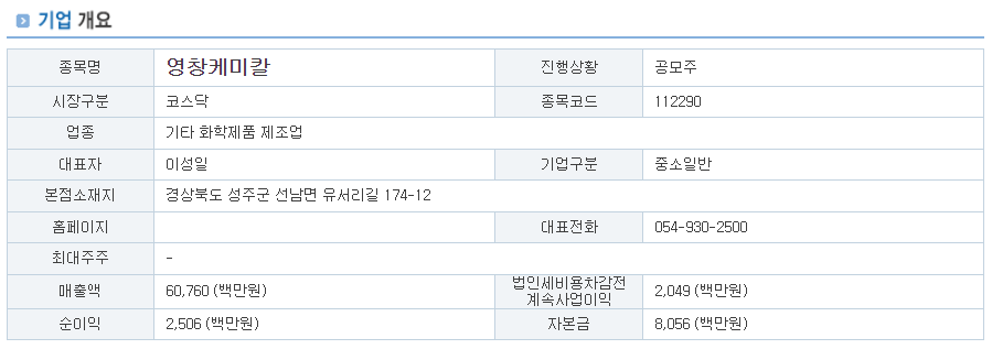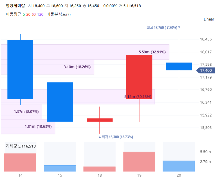 7/21) 영창 케미칼 상장 후 5일 주가