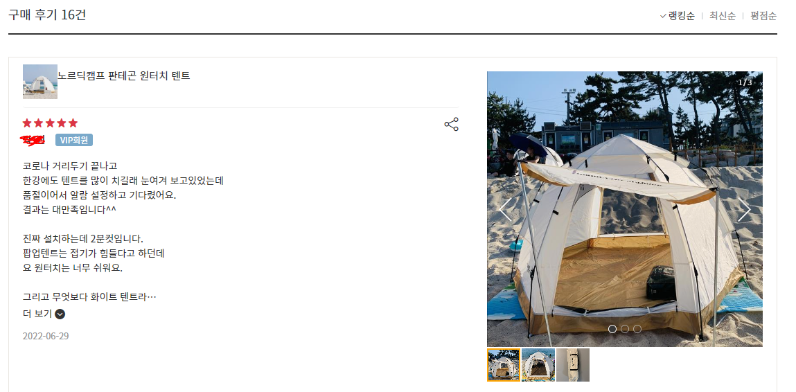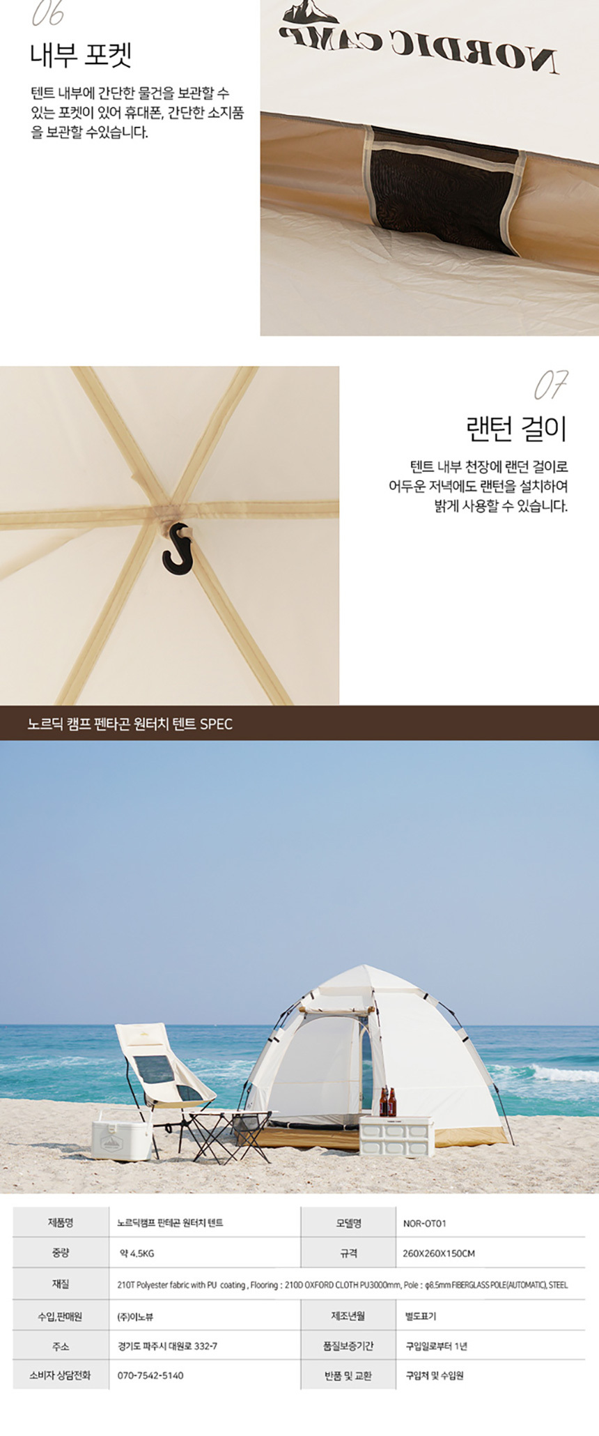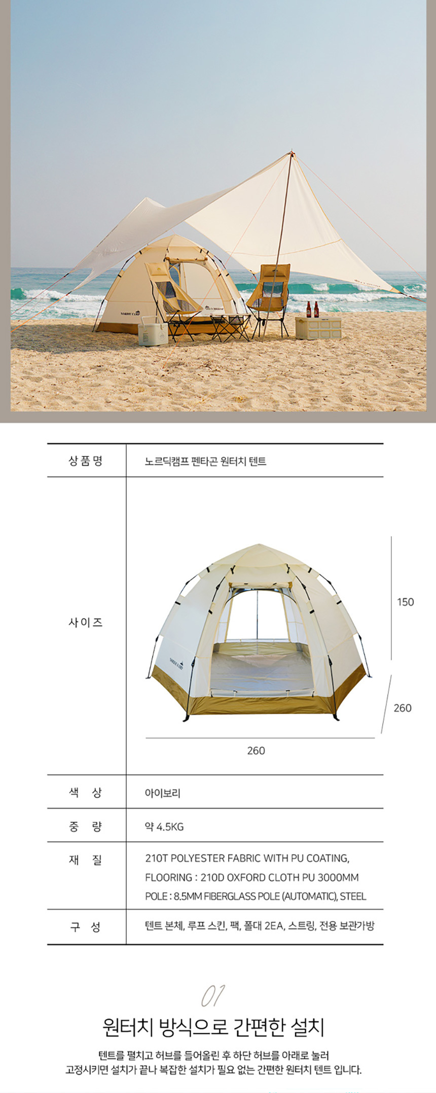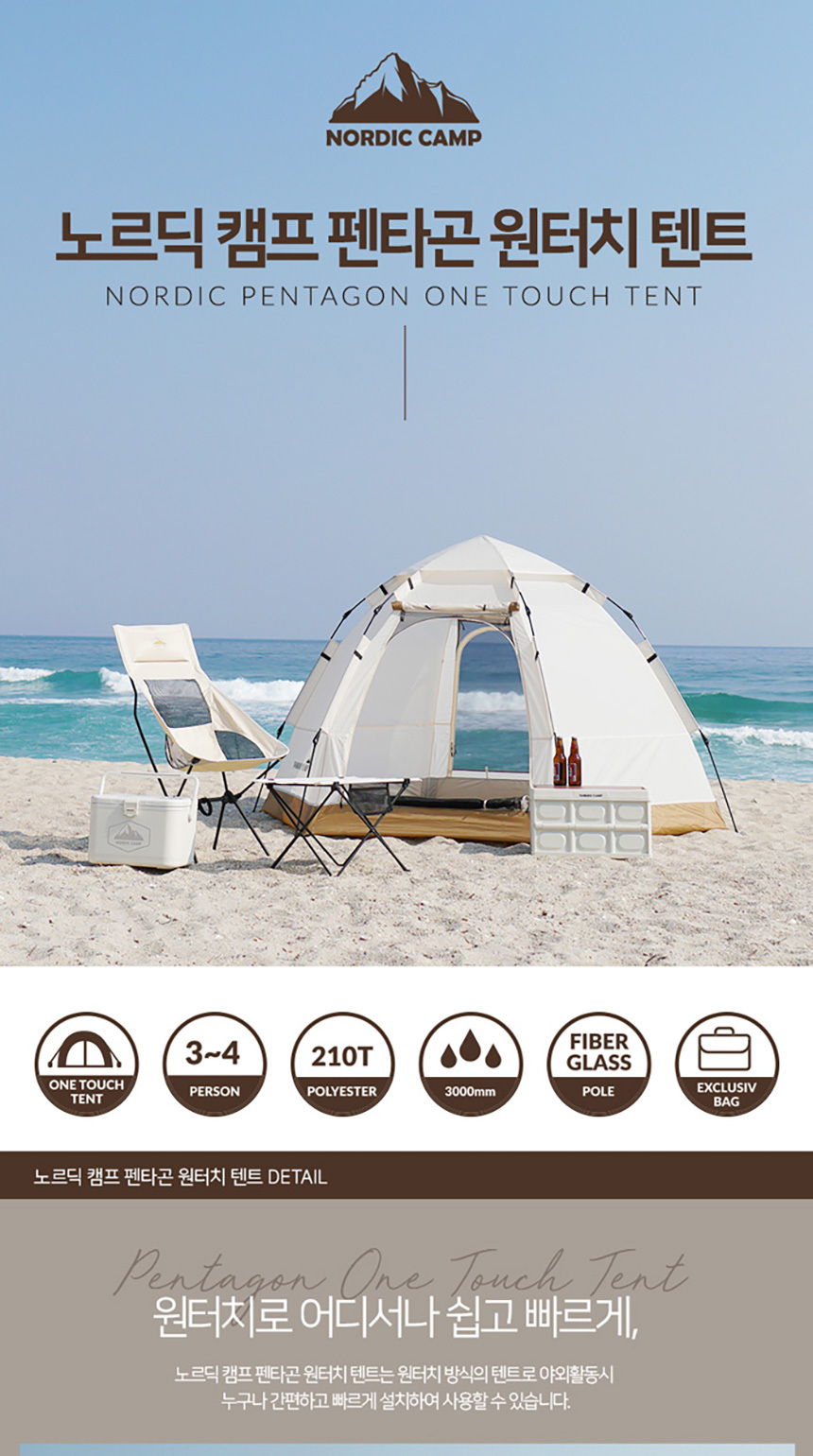 노르딕캠프 판테곤 원터치 텐트 캠핑용 휴대용 패밀리 차박 피크닉 쉘터