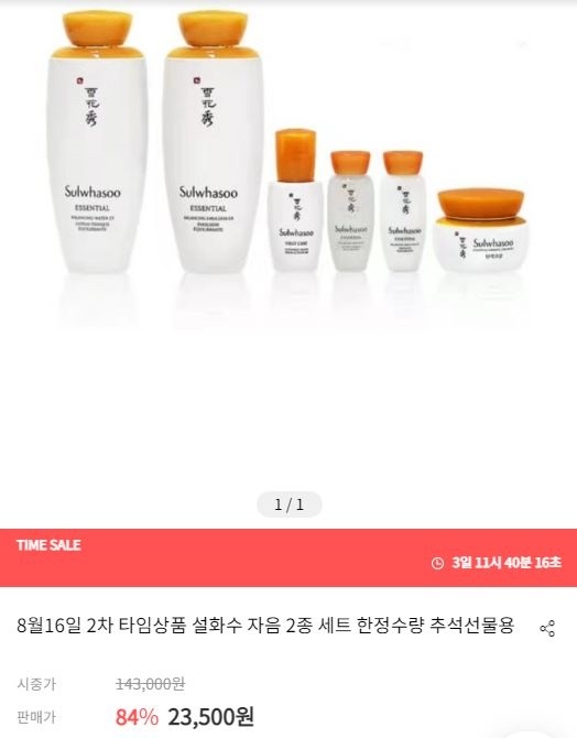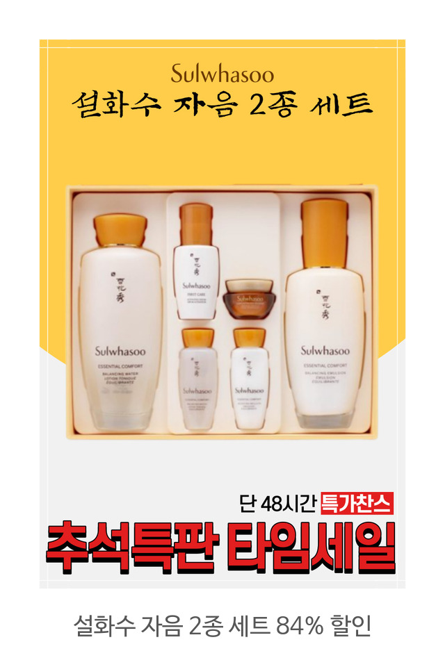 부모님 선물로 드리기 좋은 고급 화장품 기획세트 -추석선물로 좋은 설화수 -절대 놓치면 안되는 가격 -타임세일로 놓치면 안되는 기회 가격 부담 걱정하지 말고~ 주머니 부담없이 구매하세요
