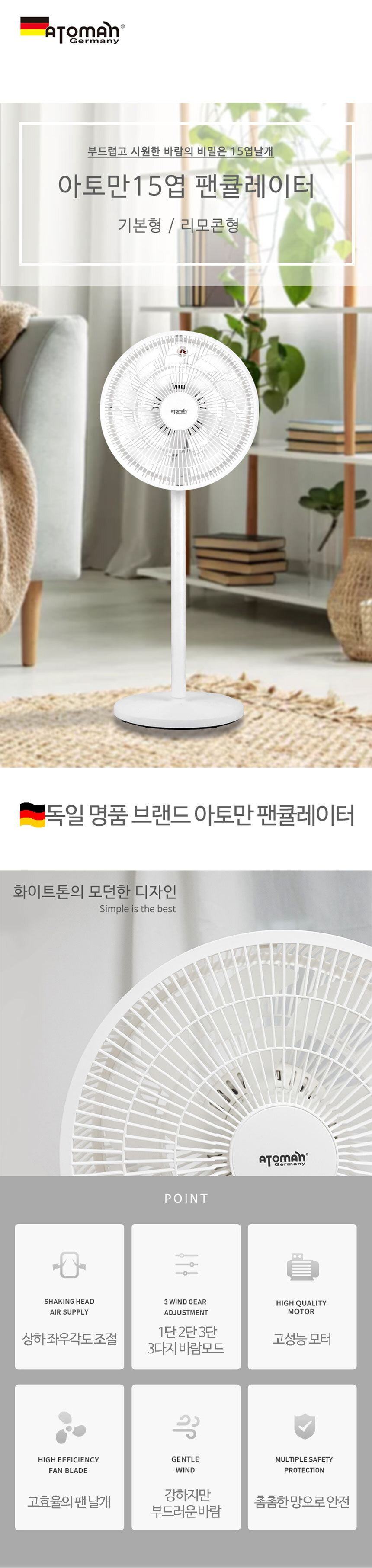 UUU몰 아토만 15엽 날개 저소음 팬큘레이터 리모컨형 스탠드 탁상용 원룸 가정용