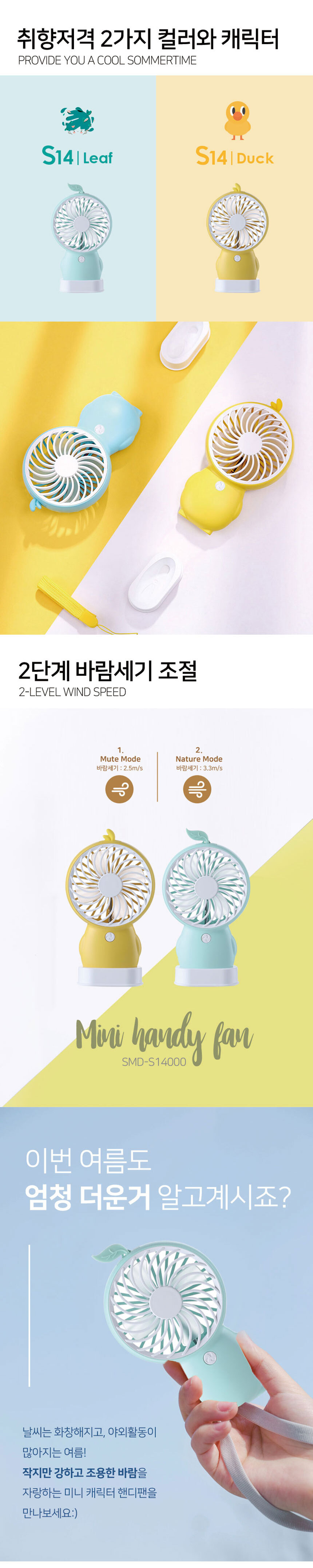 스미다 캐릭터 핸디팬 S14 미니 선풍기 휴대용 손풍기 목걸이 스탠드! 유유유 선풍기, 휴대용 선풍기 추천, 무선 선풍기, 캠핑 선풍기