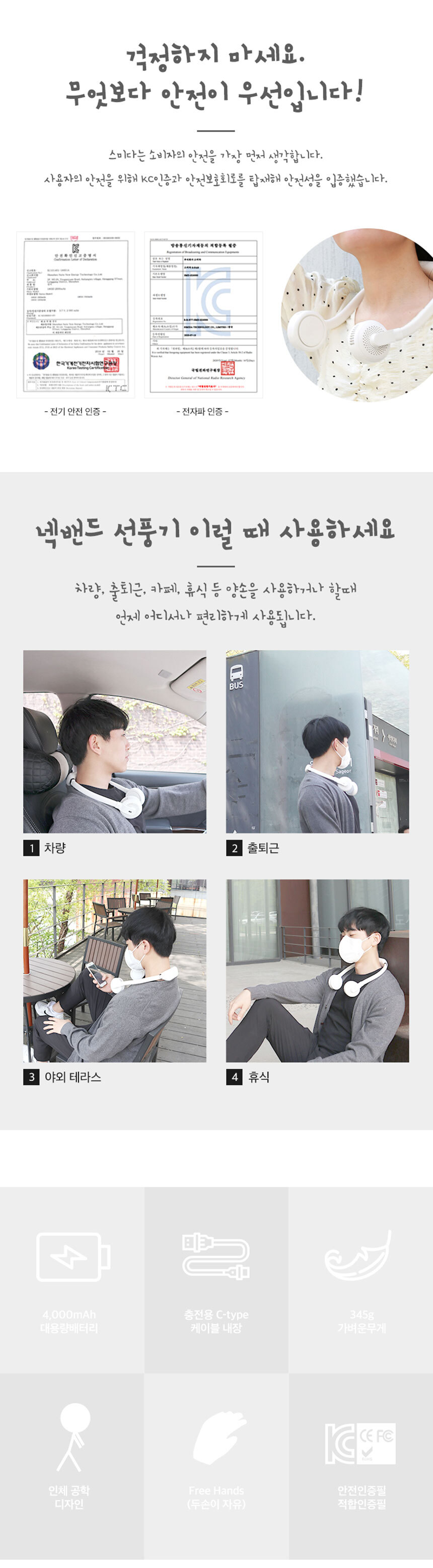 UUU몰 스미다 넥밴드형 스핀팬 S28 미니 선풍기 캠핑 목 넥 목걸이 목에거는