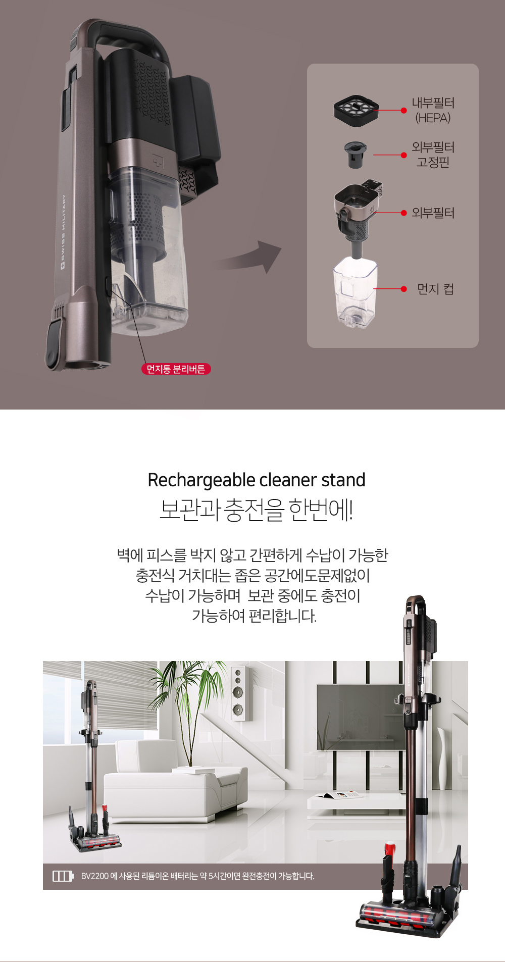 UUU몰 스위스밀리터리 에어슬림 무선 진공 청소기 원룸 핸디 자취방 머리카락