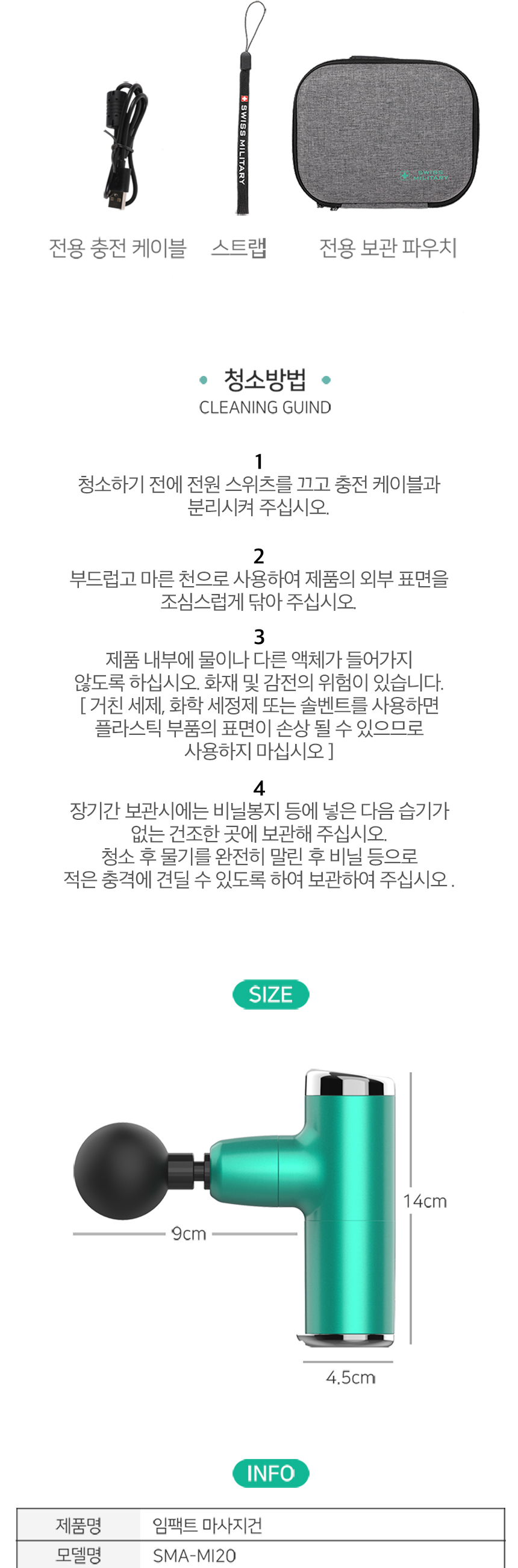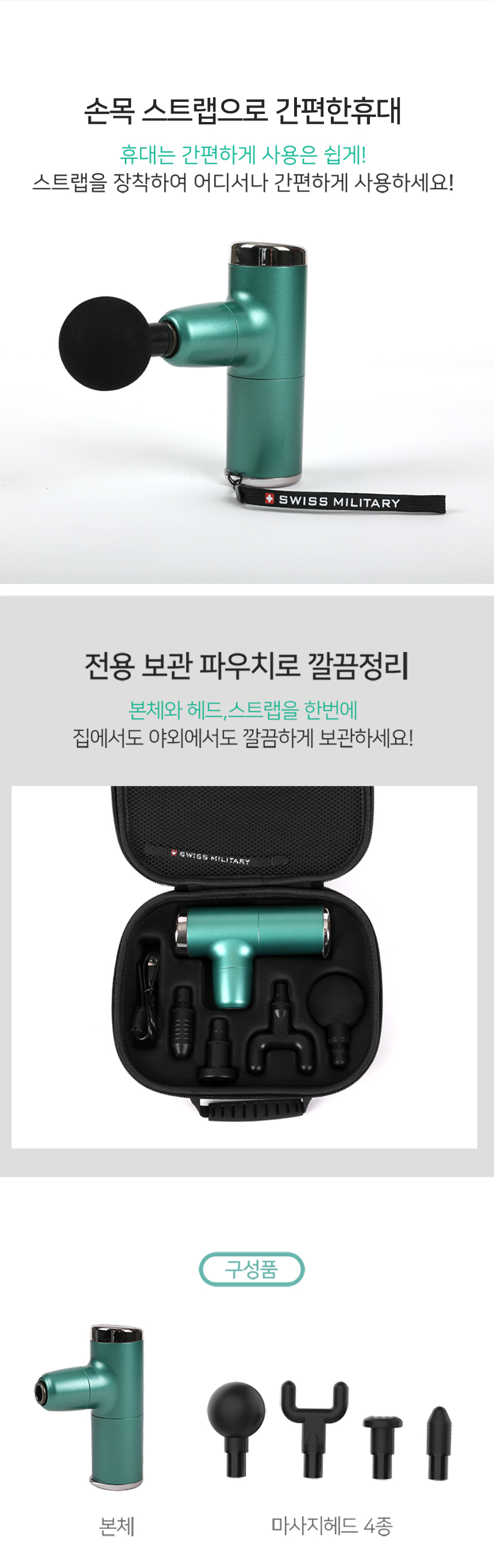 UUU몰 스위스밀리터리 BLDC 임팩트 마사지건 안마기 손 어깨 목 미니 휴대용