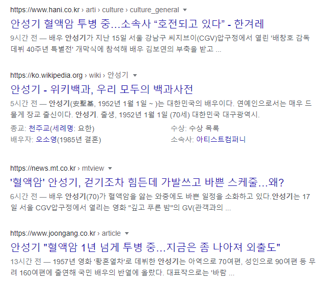 1위는 안성기씨입니다.