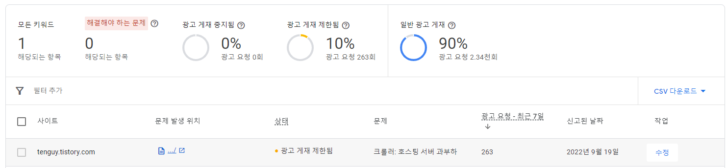 2) 블로그에 광고가 제한됨(수익 제한됨)