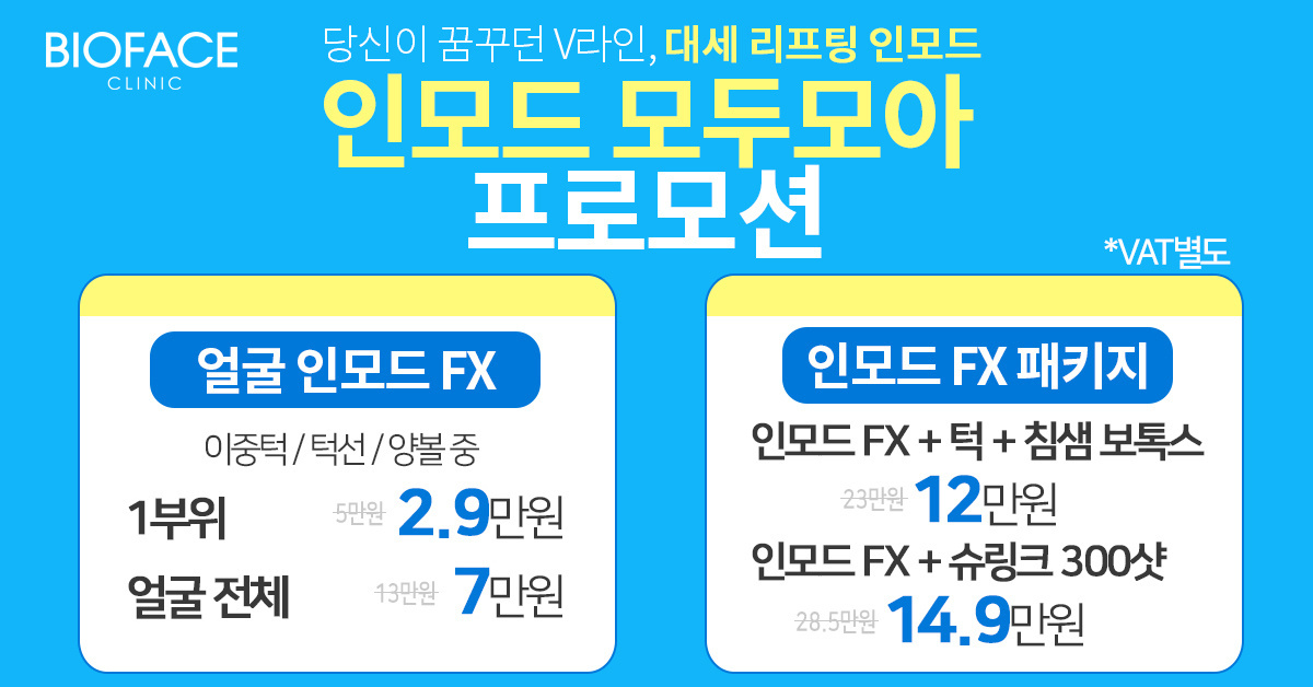 [첨단 의료장비, 두발 앞선 시술법] 여러분의 비오페이스 클리닉 입니다. 신사역 4번출구 도보 1초~ [ 인모드 모두모아 프로모션 ] 당신이 꿈꾸던 V라인, 대세 리프팅 인모드! 셀럽들이 인정하는