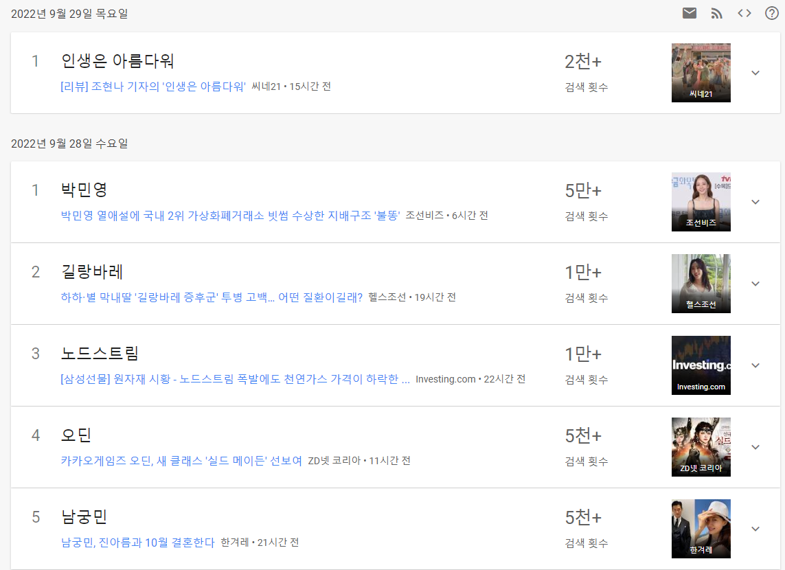 | (오늘의 키워드)2022년 9월 28일_트렌드 (0) | 2022.09.28 |