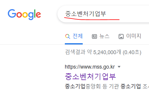 1. 검색창에서 중소벤처기업부를 검색한다.