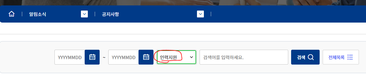 4. 알람 소식 내에 검색내용중 "인력자원"을 누르고 검색 클릭.