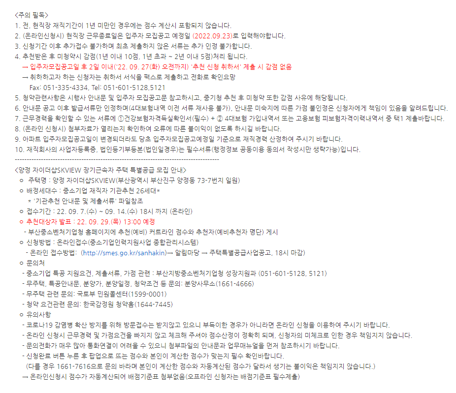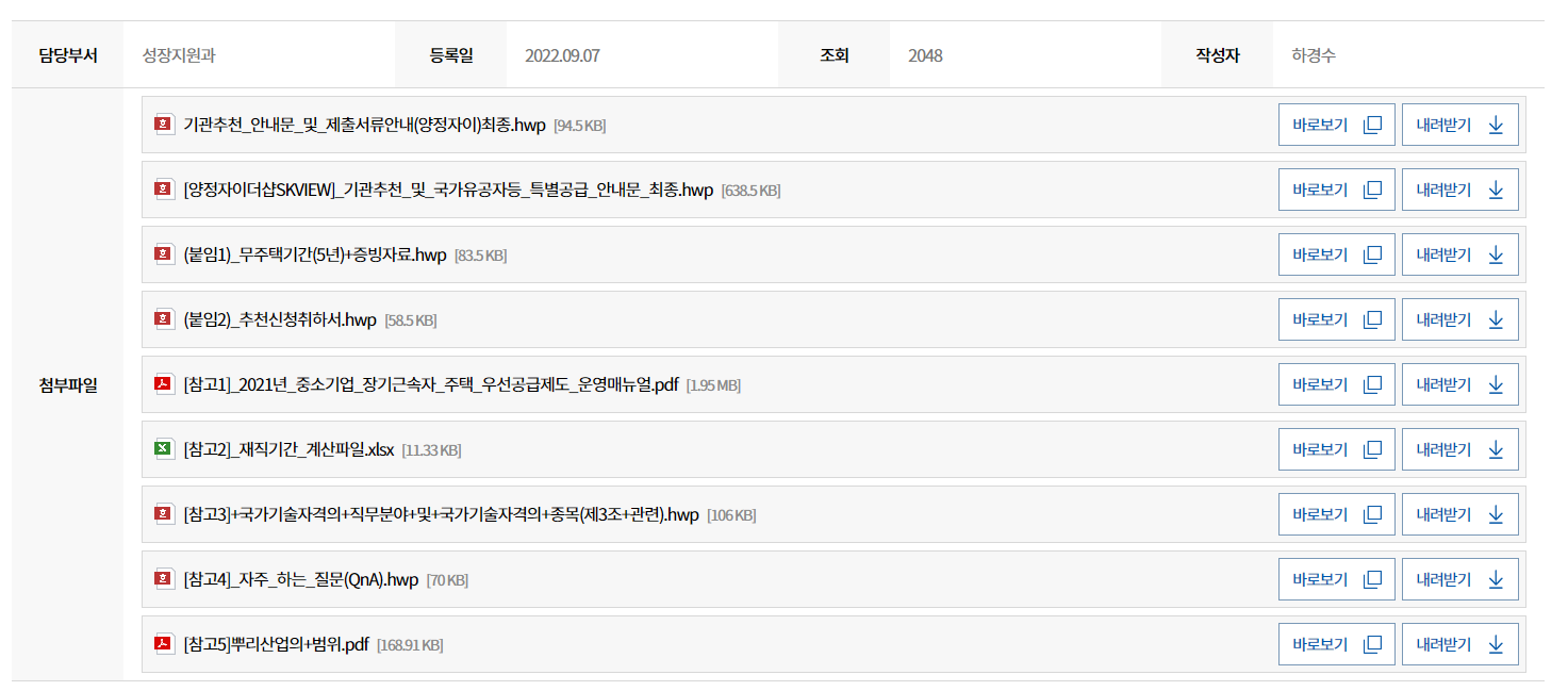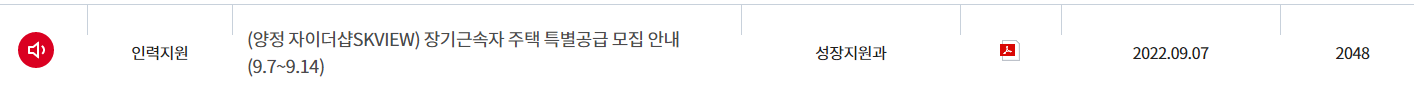 5. 아래와 같이 리스트가 생성됨. 그중에 자기가 원하는 지역의 아파트에 장기 근속자주택 우선 공급