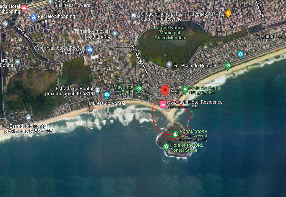 섬을 중심으로 해변이 양쪽으로 있습니다.