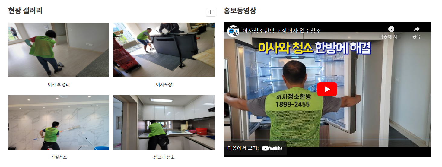 이사업체 따로 청소업체 따로 알아보지 말고 한 업체에서 모두 해결.