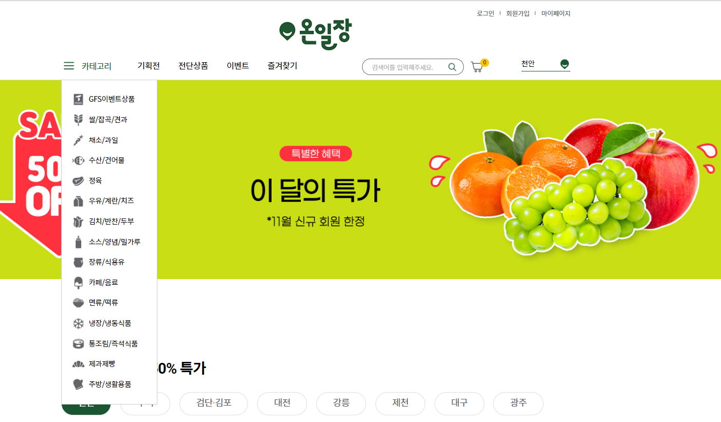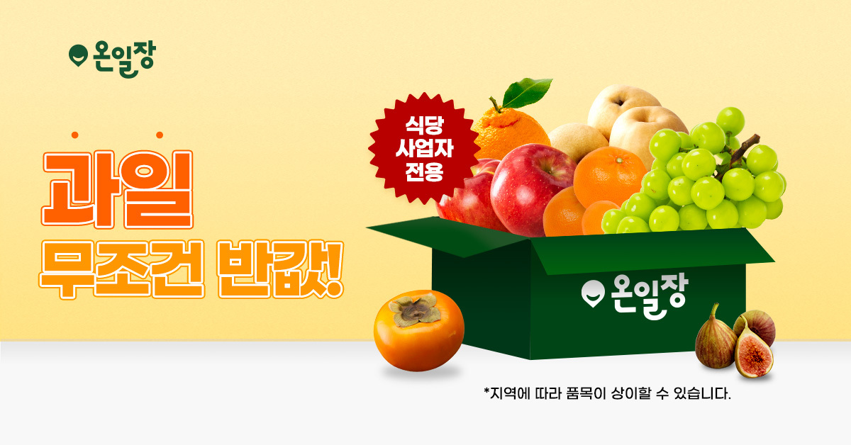 온일장 '11월 한정' 과일 반값 특가! #식자재 #당일배송 #사업자전용 신규 가입 사장님들께 신선한 과일 50% 특급 할인! 다양하고 맛있는 과일들을 반값 특가! 지금 바로 쉽고 간편하게 주문해 보세