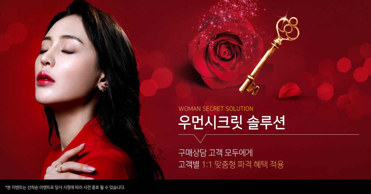 사랑(하기)받기 위한 모든 여성을 위해 여자의 '격'을 갖춘 우먼시크릿 솔루션은 전문 여성 플래너와의 1:1 비밀상담을 통해 맞춤 관리 프로그램을 경험하실 수 있으며, 고객의 체질과 증상에 맞는 프로그램과 더욱 체계적인 관리 시스템으로 2~3주 만에 여성의 말 못할 고민을 함께 고민하고 개선방안을 제안합니다.