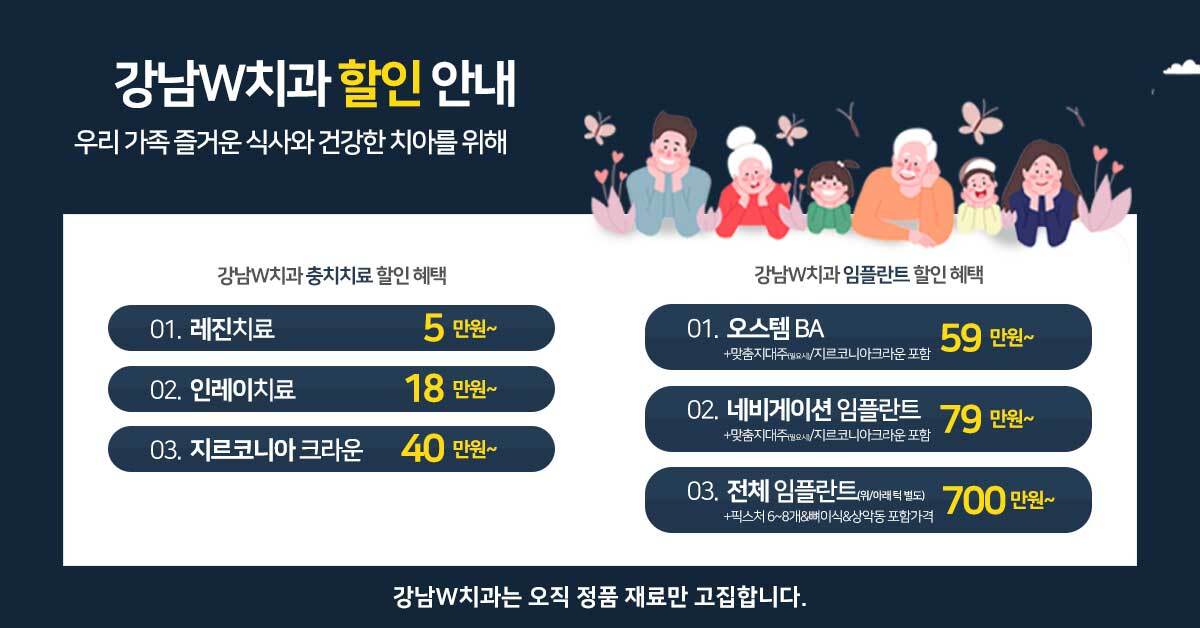 ※ 임플란트, 비용 아끼세요!! -오스템BA 59만 원 (맞춤 지대주 + 지르코니아 크라운 무료 포함) -전체임플란트 700만 - (위/아래 턱 별도 금액) (픽스처 6~8개 + 상악동거상술/뼈이식 비용 추가 X) 20년