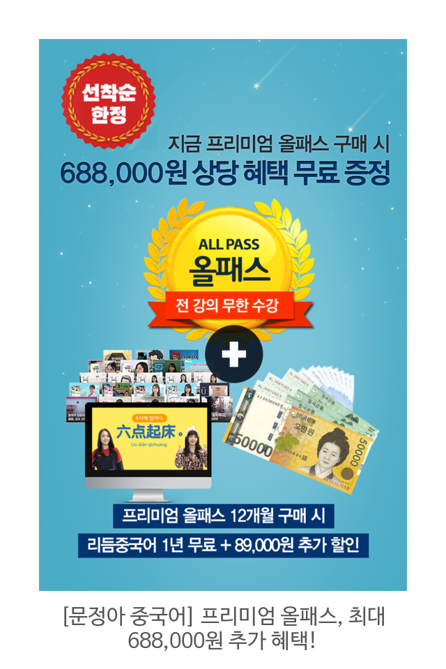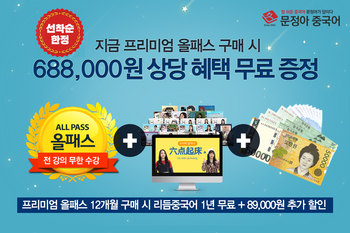[문정아 중국어] 프리미엄 올패스, 최대 688,000원 추가 혜택!