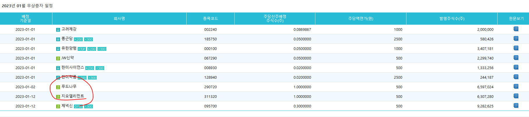 1월 12일 무상증자 시작하니 12월 28일에 담아 놔야 겠군