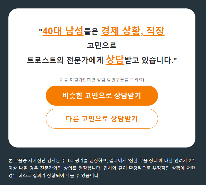 무료 우울증 검사, 자가진단 테스트 - 국내 1위 멘탈케어 앱 트로스트 (trost.co.kr)