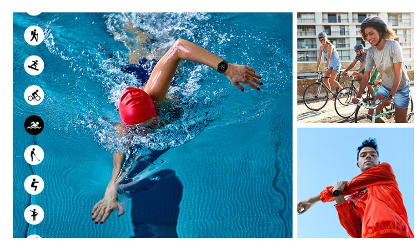 시계, 사진, 블루투스, 알람, 카메라 리모컨, 나침판, 달력, 헬스, 혈압, 걸음수, 수면 주기, 날씨, 운동, ECG, 맥박, 스트레스 ........등등이며, 타일을 추가 할 수 있습니다.