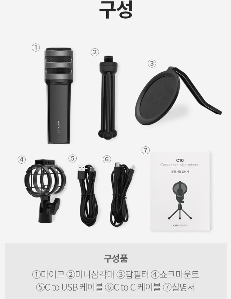1. 추천 마이크 명칭 : 마타스튜디오 C10 방송용 녹음용 USB 스탠드 콘덴서 마이크