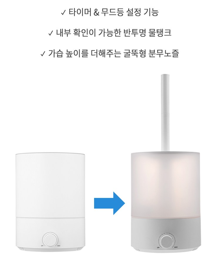 그래서 지난 겨울부터 쓰고 있던 아래의 가습기를 교체하고 싶은 생각으로 찾아 봤습니다.단점은 용량이 작아서 수시로 갈아 줘야 하는 불편함이 있습니다.