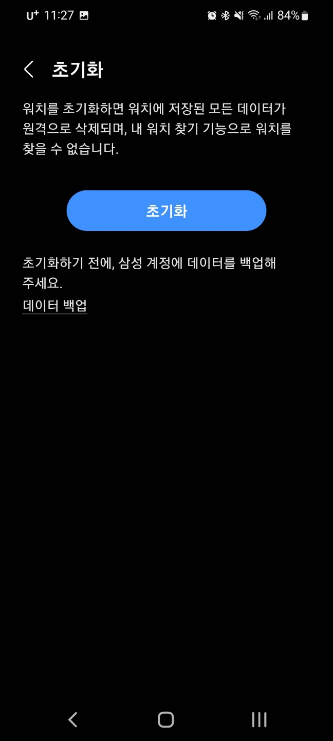 긴장하지 말고 초기화를 누름(필요한 기능이나 데이터가 있다면 꼭 백업을 하기 바람)