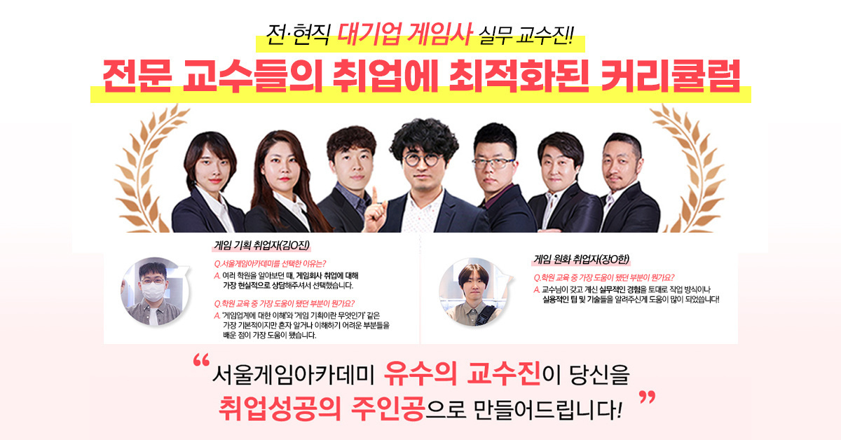 국비지원으로 게임개발자로 취업하자! 초봉 5000만원 시대 꿈을 이루고자 하는 청년들이 인생으 모든 것을 걸고 꿈의 학원으로 향합니다. [모집과정] 게임프로그래밍, 게임원화, 게임기획, 게임
