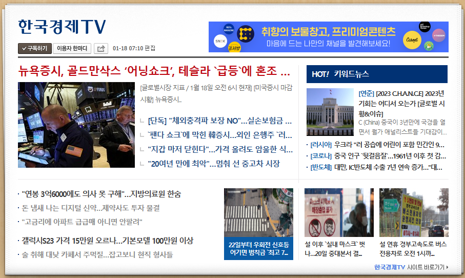 2. 한국경제TV : 뉴욕증시, 골드만삭스 '어닐쇼크'