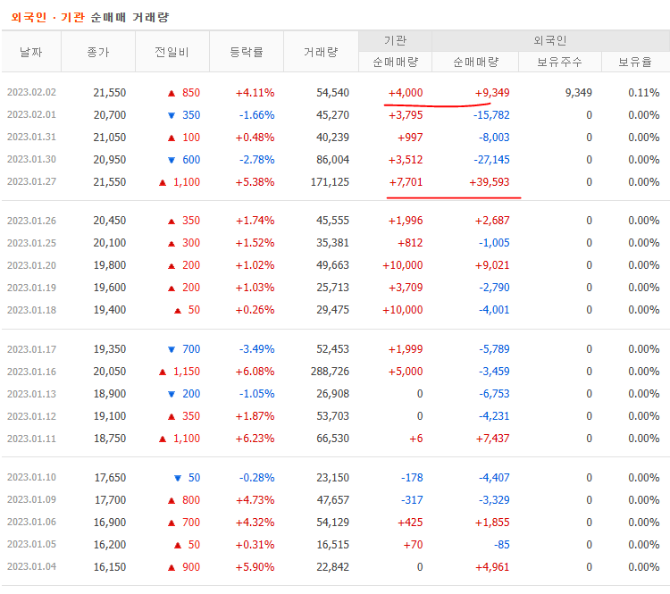 5. 외국인 기관 매구 거래 : NG → OK(기관 구매 늘어남)