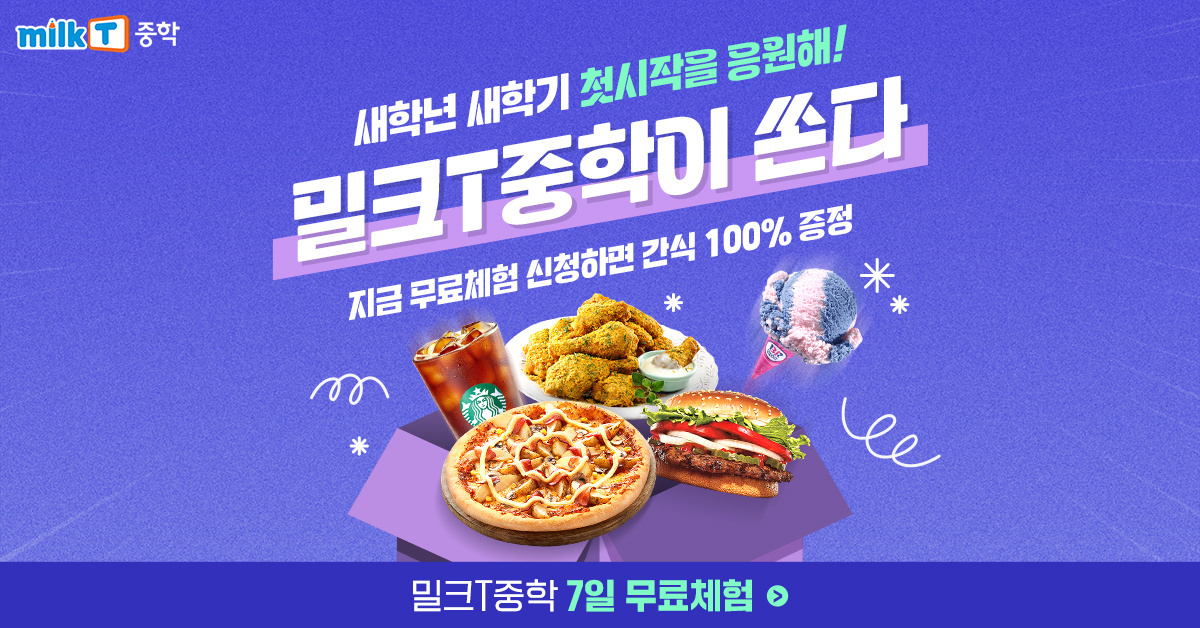 나보다 나를 더 잘아는 밀착 맞춤 학습, 밀크T중학 무료체험 시 랜덤 간식 100% 증정! [중학 및 고등 전 강좌 무제한 수강] 교과서 점유율 1위 천재교과서에서 만든 개인 맞춤형 학습 밀크T중학 예