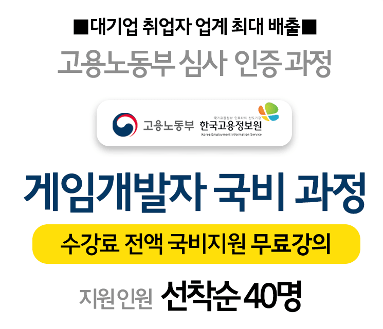 게임 개발 국비교육받고 게임회사 취업하자! 부산지점