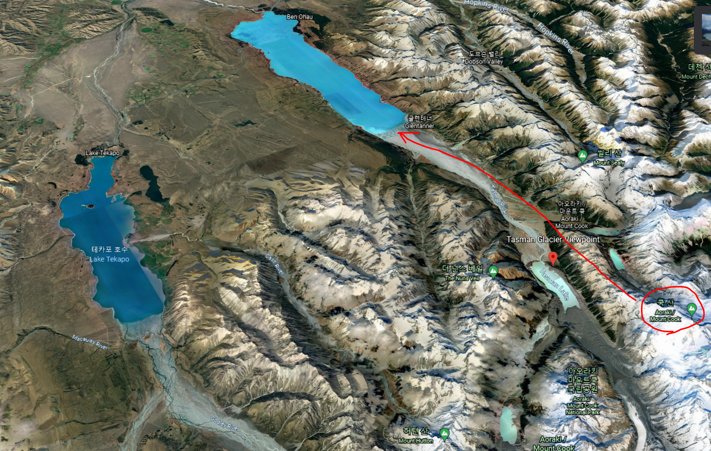 뉴질랜드의 척추 쿡 산 Aoraki / Mount Cook 입니다.