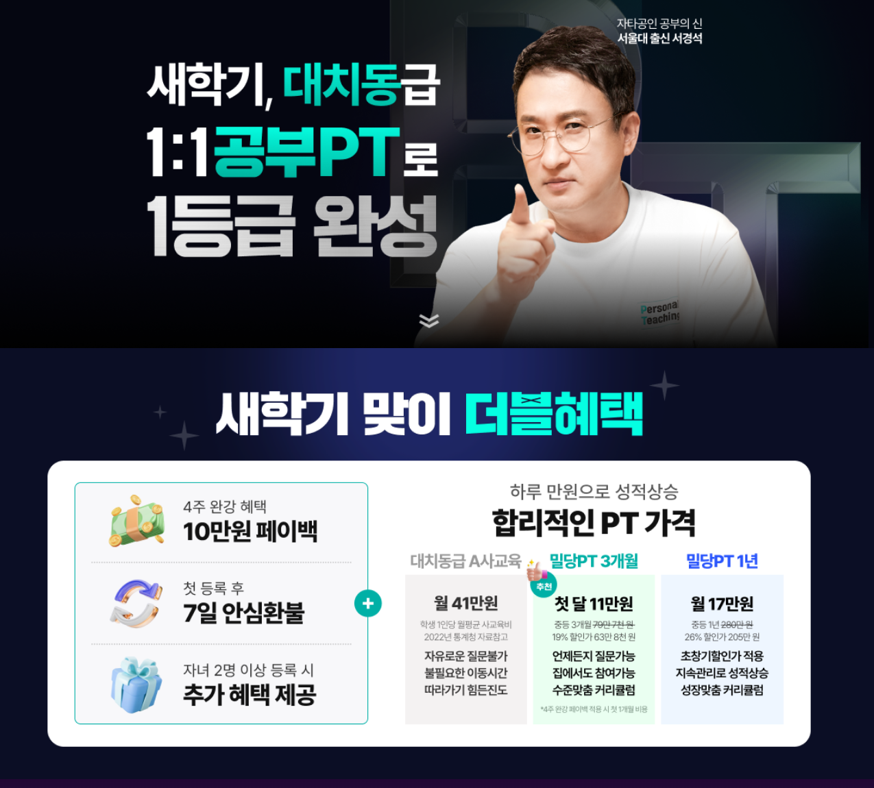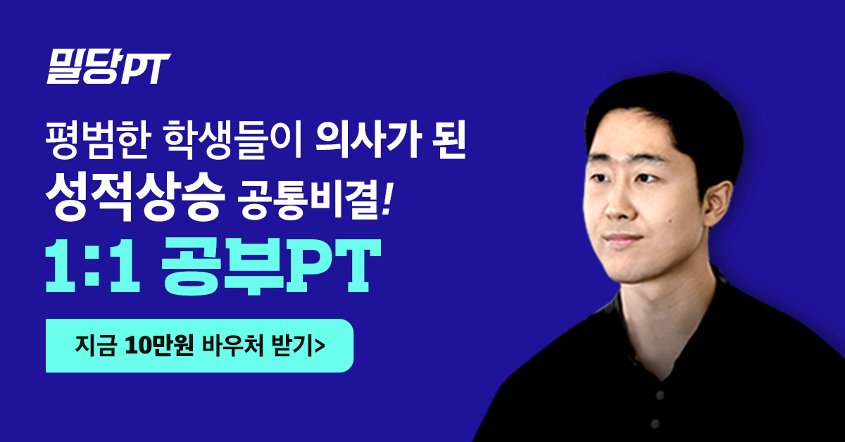 단체수업 말고 대치동 수준 1:1 온택트 퍼스널티칭, 밀당PT하세요 서울대 의대 수석이 직접 말해주는 8등급 학생도 서울대 보낸 "꿀 정보" 자타공인 대한민국 공부 상위 1%들의 이유있는 추천! 밀