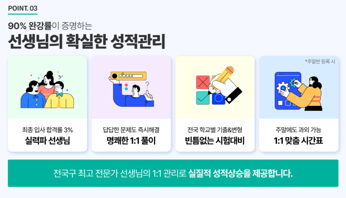 1:1 집중 관리 시스템으로 압도적인 완강률!
