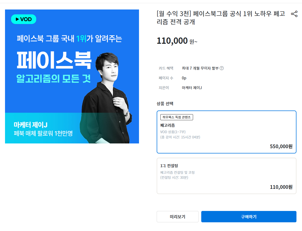 목차 1부. 20대인 내가 페이스북으로 연봉 2억을 달성하기까지 2부. 페이스북 상위 0.01%가 알려주는 현 시장 생태계 3부. 페린이가 퀀텀 점프할 수 있는 [Build up 기초] 4부. 페린이가 퀀텀 점프할 수