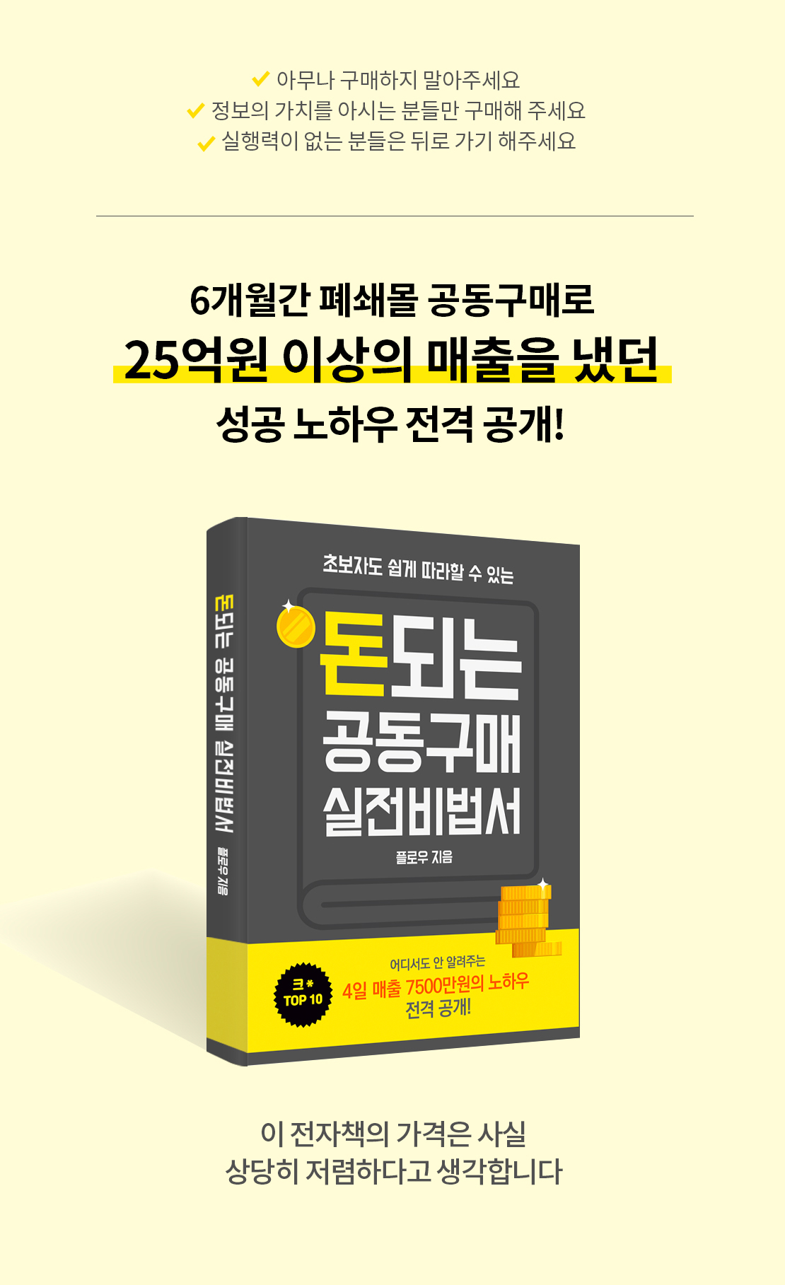 [4일 수익 7500만원] 초보자도 쉽게 따라할 수 있는 공동구매 실전 비법서