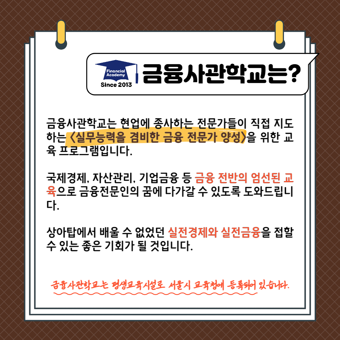 경제 상식이 부족하신 분, 경제신문 읽기가 어려우신 분, 금융권 취업을 원하시는 분들의 많은 신청 바랍니다.